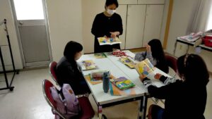 日本語で楽しく内容を確認しながら、英語の語彙、構文のインプットに加え、英語の自然な会話の流れをも知らぬうちにインプットしています。そして、インプットしたものを消化し、話題に沿った自分なりのoutputを互いに楽しむ先に、みんなの自信に満ちた将来の兆しが既に見えています。(文責:夏菜先生)