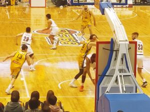 バスケの試合をテレビ(現場から遠いところ)で見ると、選手の動きはスムーズ。